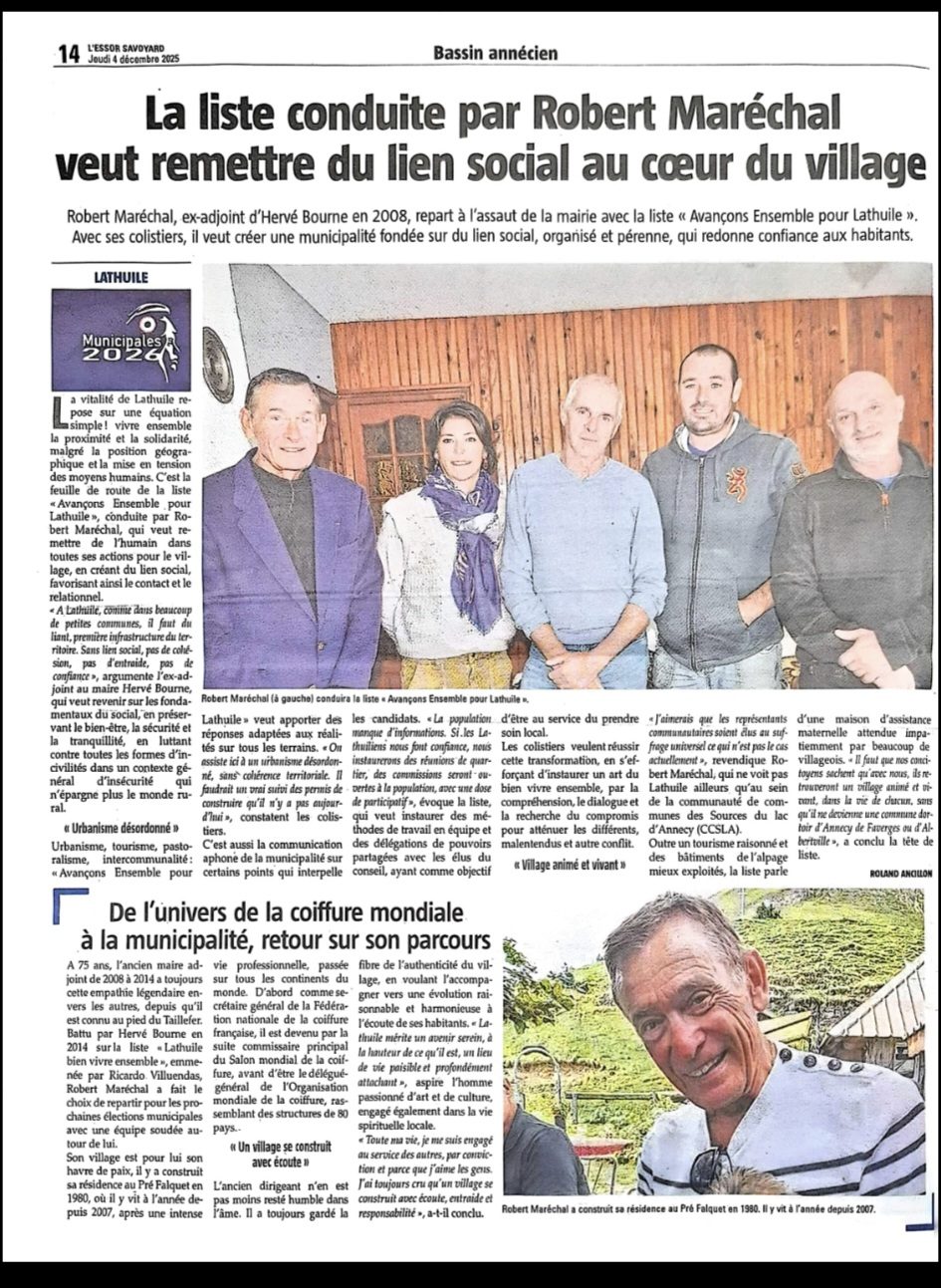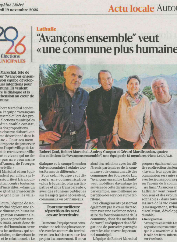 Le Dauphiné Libéré est récemment venu à la rencontre de la liste Avançons ensemble pour échanger sur notre projet communal, nos valeurs et notre vision pour l’avenir de la commune.